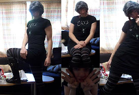 Anyway, I forgot to take photos of my Cats outfit, so here is my Cats-inspired outfit. You can't really see, because of the crappy light and my crappy camera, but the green and grey in the hat match the green and grey in the tights, and the cat on my t-shirt is green as well. Yay for matching colours. I'm in love with the dress I'm wearing under the t-shirt too. It has a huge pocket, which I call my pouch. It's probably going to become a regular part of my festival wear, because that pocket is so huge I'll never have to bring a bag.