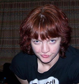 As the title of this post suggests (and as anyone who follows me on Twitter already knows), I cut my hair. It is infact even on both sides, but my strange tendency to pose like an idiot for the camera makes it look a bit wonky in this photo. I love it! The only thing is, it looks like I have some kind of compulsive head twitch, because I keep trying to flip my hair over one shoulder. Only thing is that it's no longer long enough to flip that far. I'm still toying with the idea of dying it black as well, but I think red may hang around for at least a bit longer.