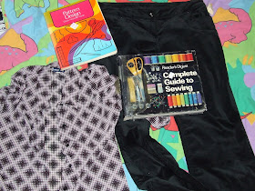 The crazy looking button down is actually red, grey and black, and wierdly enough it matched the outfit I was already wearing perfectly. It cost me $3.5o. The pants were an expensive $7.50, but they are exactly the same as a pair I had a few years ago that got wrecked. The dino quilt cover was $6, which is again kind of expensive for op-shopping, but this is Brisbane. The books were real bargains though! I got the Readers Digest Complete Guide to Sewing for $4! Plus, that Patten Design book only cost me $2, and it tells you how to make basic patterns AND how to alter your basic pattens into pretty much anything. I should add here that since I'm broke, when it say these things cost