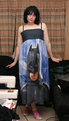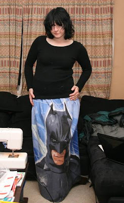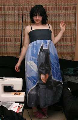 Can you guess what I did Sunday night when I was meant to be packing for Toowoomba? Yes, I did make another Batman-themed piece of clothing. I used the other half of the quilt cover that I made my last Batman dress from, and made this little strapless number.