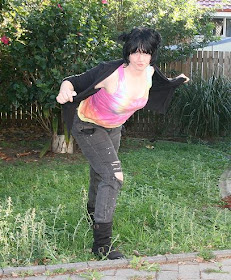 Now, what do you notice about the outfits I have picked? I'll tell you what I noticed. In five out of six outfits I'm wearing pants and boots, and four of those outfits include the same pair of boots. In four I'm wearing dark skinny leg pants, and in three of them the same pair of pants. In five out of six I am wearing pants, and in every outfit I am wearing mostly black, with a little colour.