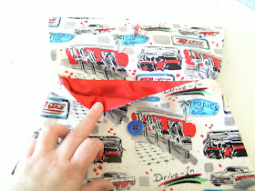 The prize in this give away is a 1950's diner-drive in clutch purse, handmade by Psycho Sue herself. Check out this baby: