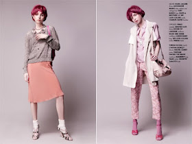 Who knew there were so many different shades of pink? Oh right, everyone except me. I just love the way that all the different shades work in together - especially with the models' striking hair colour. Enough to make me start wearing more pink? Maybe not. Enough to make my fashion-crazy self start slobbering? Definitely.
