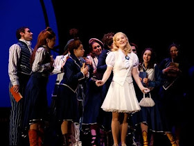 Galinda (later Glinda the Good Witch) in her beautiful white outfit at school. Love the navy and white school uniforms in the background. Wish I'd had a school uniform like that.