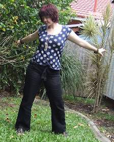 I am really loving these pants. They're a new wardrobe addition, replacing my old "comfy" pants. I had those pants for about four years, and they just seemed to lose their shape one day in the wash. I was devastated that they didn't fit properly any more, but off to the op-shop they go. It's taken me about six months to find a new pair that fit in a similar way, and I'm so glad that I waited for the perfect pair. I've probably tried on a million mediocre pairs in the meantime, but it was worth the wait. These are so comfortable, and fit really nicely (even if they have wrinkled up a bit for these photos).