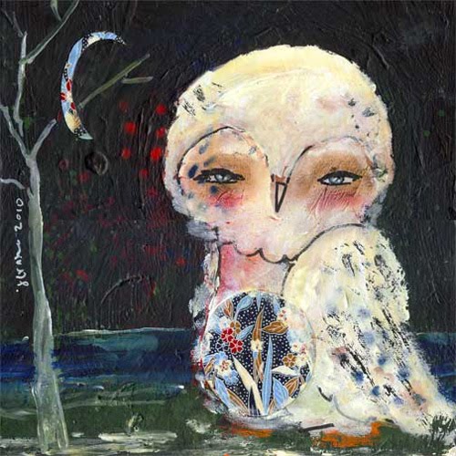A little while back I read this fabulous interview on My Owl Barn, which introduced me to an amazing artist. These beautiful owls jumped out at me, and I have to say it was love at first sight. They are the creations of Juliette Crane, a mixed-media painter from Wisconsin.