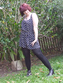 I've been quite proud of myself actually. You see, The Boyfriend lost his job a while back, so we've been living on an extremely tight budget. This has meant a much smaller (read: non-existent) clothing budget for me, and a whole lotta' remixing. That doesn't really bother me, but once upon a time when we've been in the same situation I have still splurged on clothes that I don't need, even when we can't afford it. This time, the new romper & pair of boots are the product of me working over-time (amongst various bill payments) in the last few weeks. I feel so good about picking a few items I really love, and saving for them. I'm also proud for telling myself "no" when I know that we can't afford something, and sticking to that. Is that financial responsibility I hear knocking on my door? Well, if it is, I am suitably attired.