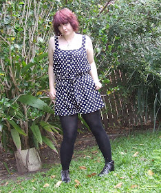 Now, as some of you may remember, I declared my embarrassingly undying love for jumpsuits & rompers earlier this week. In which case, you might remember something about me promising pictures of the polka-dot romper that I may or may not have bought myself this week. Well now I am here to reassure you that not only did I buy said romper, but I also keep my promises.