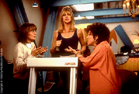 Apparently it developed somewhat of a cult following amongst middle-aged women (and little girls named Stacey - probably for the best that I didn't actually grow up to be Goldie Hawn's character like I wanted). I find it interesting to watch these movies now and see how some of the clothing items come back into fashion. Bodysuits and denim shorts anyone? Chunky knit sweaters? Tuxedo jackets for women?