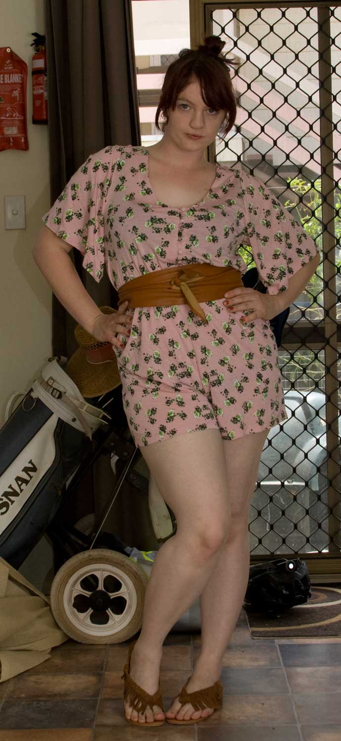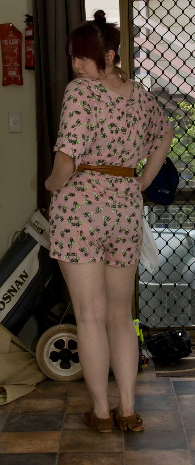Moving right along, here is another one of my outfits from this week. I wore this to loll around watching movies & do a few household chores. One reason I will be sad to leave Brisbane: it seems like no-one else is into the romper/playsuit thing in Brisvegas, so I seem to find them for a pittance. I snapped this up when I happened to walk into my local Target on a clearance day. It was $29.95, and I scored it for $2.86. There were heaps of them sitting there, so I can only hope they all found good homes. Perhaps people were put off by the fact that your only exit is undoing the multitude of buttons at the bust of this thing? Definitely not something to wear if you suspect you might get lucky.