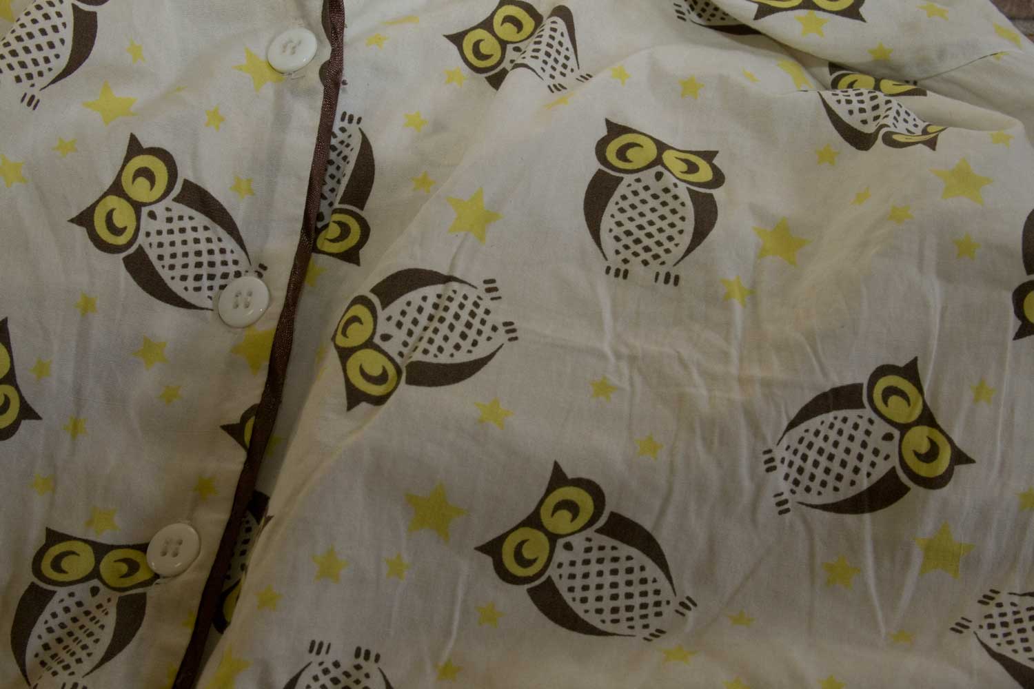 I'm fairly certain it was meant to be part of a PJ set, because it was in the sleepwear section of the op-shop, the label sounds sleepwear-ish, and the price tag was missing. If I'm right, and there was pants that go with this, then the person who scored them better hope I don't run into them in a dark alley. I would probably get violent for owl-print pants.